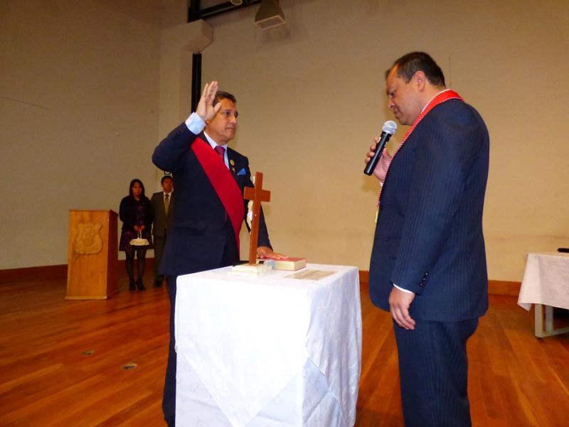 El Presidente de la Junta de Fiscales de Cajamarca, Cristian Araujo Morales tomó juramento a Mesías Guevara como titular de esta plataforma interinstitucional. Luego la autoridad tomó juramento y colocó el distintivo oficial a cada uno de los integrantes de esta plataforma.