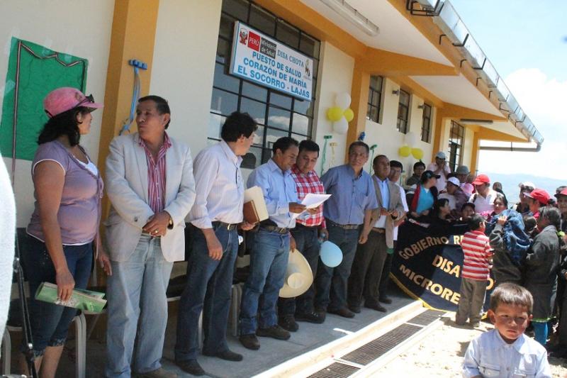 En medio de innumerables muestras de apoyo, este viernes 08 de noviembre, el presidente regional de Cajamarca, Gregorio Santos, inauguró en el distrito chotano de Lajas, la construcción y equipamiento del puesto de salud “Corazón de María” de la localidad El Socorro.